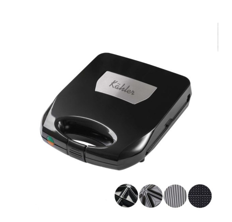 ساندویچ ساز 4 کاره کاخلر مدل KH-214-G_KH-214-B_KH-214-W با سه رنگ سفید، مشکی و طوسی، و سه صفحه مجزاء: ساندویچ ساز،گریل و وافل و فینگرفود یک اسنک ساز بسیار پر کاربرد و خاص می باشد. وجه تمایزی که اسنک ساز کاخلر نسبت به رقبای خود دارد، دارا بودن قفل نشکن است، که یکی از شایع ترین مشکلات اسنک ساز هاست. قابلیت بعدی این محصول باز شدن تا 180 درجه برای گریل کردن مواد غذایی می باشد. صفحات بکار رفته در اسنک ساز کاخلر از جنس تفلون نچسب می باشد که به راحتی قابل شستشو است. یکی دیگر از ویژگی های بارز این محصول داشتن زیر و روی خنک هنگام پخت می باشد که این امر کار را برای کاربر در هنگام استفاده بسیار آسان می کند.
